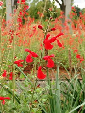 It's hard to believe this gem of a Salvia has proven so hardy in recent years: I have seen it thriving in many gardens. Even as an annual, it makes a spectacle worth the effort. Highly localized in northern Mexico in Nuevo Leon, this brings some Latin fire to the Darlene Radichel Plant Select garden...hurry on down and check it out (ten thousand hummingbirds can't be wrong!)...
