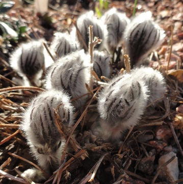 In the Dakotas they call them "prairie crocus'. Elsewhere you usually hear them called pasqueflowers, although I think the ones this year at the Gardens will mostly be done blooming by Easter...these near relations to Anemone are irresistible to anyone who loves puppies, kittens and things that are cuddly, adorable and soft. One or another kind of pasqueflower is found on plains, tundra and mountain meadows across the northern hemisphere: dozens of names can be found in floras, and hundreds of variants in every color from yellow and vermilion through the spectrum of lavenders, purples and near blues and of course crystalline whites.