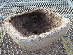 Once you have removed the trough from its form and altered the texture, place the trough back under the plastic and keep it at room temperature for four weeks. You will want to occasionally check the trough to make sure it is not drying out. If it feels dry, moisten it with water. After the curing process, if all goes well, you are ready to plant your trough! Remember to use well-draining soils and chose plants that are suitable for troughs.