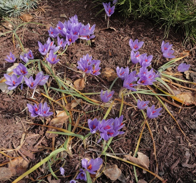 You shall just have to take my word for it, but there are hundreds of these blooming just east of the Cactus and Succulent house, and they are glorious. This wonderful crocus was only discovered a half century ago on the Mani Peninsula by its namesake botanist (Dr. Constantine Goulimis, a remarkable Greek polymath lawyer). Each year it blooms, I imagine Constantine's amazement when he stumbled upon the vast colonies of this that stretch along this rugged, remote peninsula.