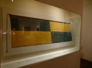 The ceramics were particularly interesting, especially the many beautiful examples of Whistling Vessels (Ceramic jars with two openings - when water is poured from one opening, air rushes in the other and creates a whistling sound.). Ulla, our enthusiastic and passionate tour guide, did an incredible job of describing the significance of the shape of and decorations on all the various jars. Textiles were also well represented. An important advancement in textiles came with the full domestication of cotton around 1000 BC. Cotton provided stronger fishing nets and therefore a more reliable source and amount of food. Hunters and gatherers were gradually replaced with fishermen - allowing the development of the first commercial centers along Peru’s coast. The museum also has many beautiful examples of ceremonial textiles. I particularly admired a brightly colored blue and gold “standard” or flag that was found buried in a clay jar in a dessert in southern Peru. It is believed to date from between 800 and 1300 AD. It was only upon closer examination that I saw how the colors were created - each block of color was made up of thousands of small blue or gold macaw feathers.