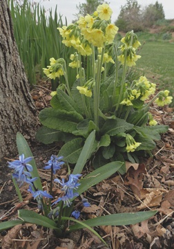 Xeriscape sometimes summons images of oceans of gravel and harsh, stickly, pointy plants that stab, slash and terrorize homeowner associations. A primrose? Really? Well, there are even primroses that can do with much less water than many people pour on their gardens, and the oxlip (famous in English Literature--even Shakespeare writes about it!) has proved itself for decades in a number of local gardens. Thanks to the Plant Select program, this and a host of other unique plants will debut across the country this spring. Oxlips do best in at least a half day's shade, but given a rich soil, mulching and occasional good watering, they will even grow in full sun in Colorado. They combine especially well with graceful, brilliant blue flowers like the Siberian squill pictured above.