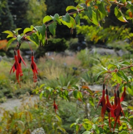 These pictures were all taken exactly one month ago: most years we have a dusting of snow by early October, and light frosts, but this amazing year the autumn wore on and on. But by Thanksgiving, winter rules the roost. Each year I am astonished at how utterly the landscape transforms with the first hard frosts: one day things look almost summery, with fuchsias dangling in the gentle breeze, annuals in prime form and blazing fall color everywhere. Abruptly, the leaves fall, the tender plants are crisped and hardy plants hunker down.