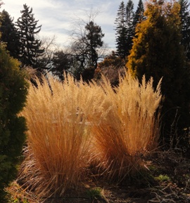 There are many peccadilloes that annoy sensitive horticulturists: seeing street trees butchered because of bad placement or powerlines, for instance. For me, it's seeing grasses in shopping centers chopped back to crewcuts by the acre in early fall. One of the great visual pleasures of winter is golden backlighting on clumps of bunchgrass in  late afternoon. This picture was taken a month ago in the Romantic Garden at Denver Botanic Gardens, but you can find this and dozens of other grassy vignettes glowing still around the Gardens where our horticultural staff stave off the inevitable "cut back" as long as they can. But in the next few weeks, tens of thousands of bulbs start growing in earnest, and the time for winter grasses will have passed. By the way, Korean feather reed grass was inducted in 2009 by Plant Select. Although it is fertile, and can self sow a bit if mulched with gravel, we find that mulched thickly with compost and planted in part shade, it is much more striking than its overused cousin, Karl Foerster grass. We can all use a bit more gold in our lives, don't you agree?